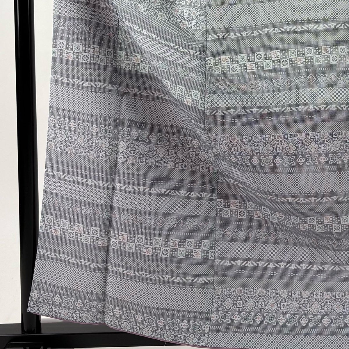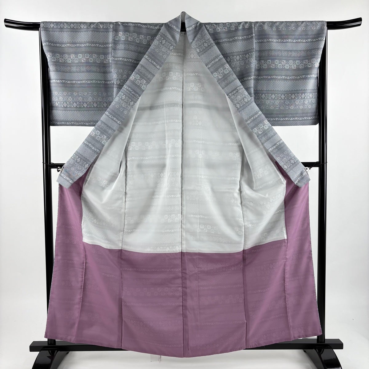 【美品】 小紋 身丈160cm 裄丈65cm M 袷 幾何学 灰紫 正絹 優品
