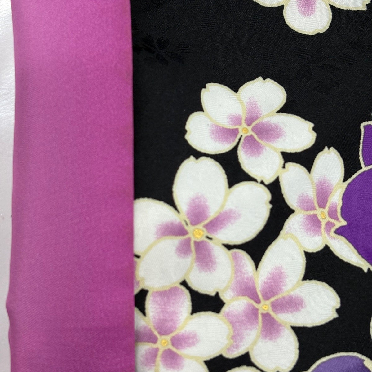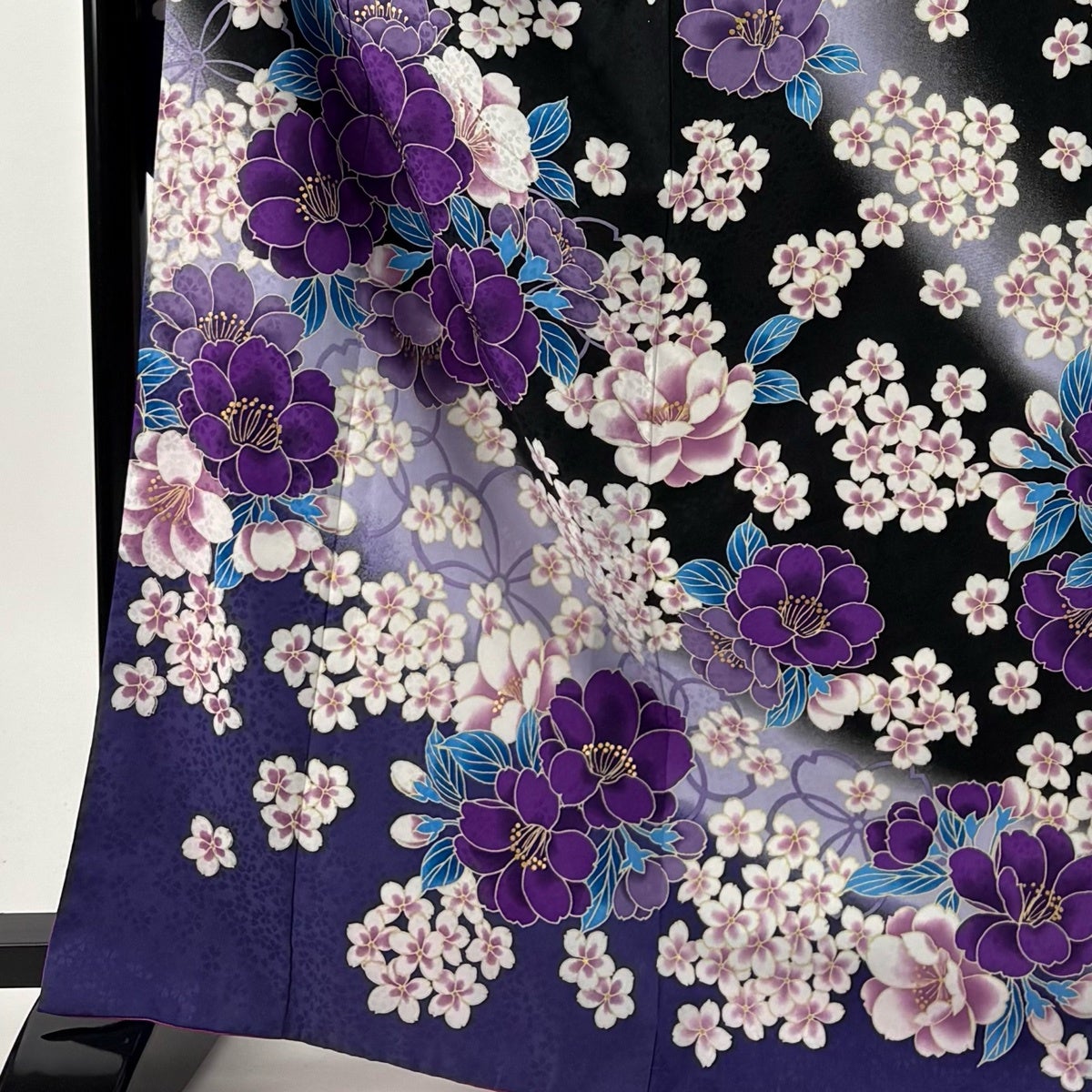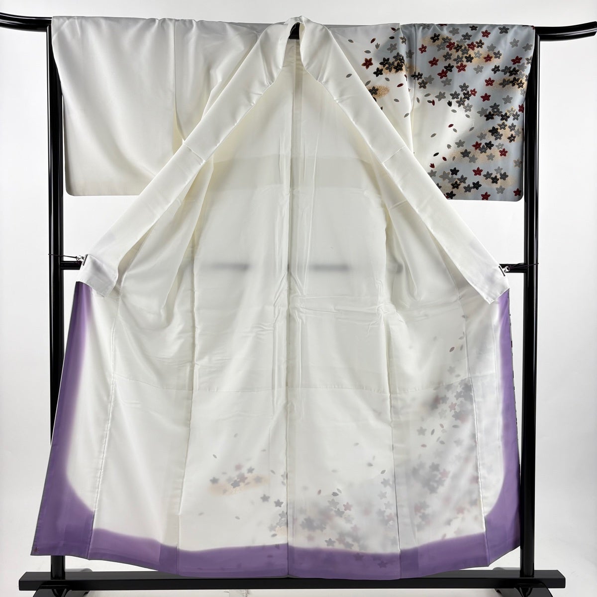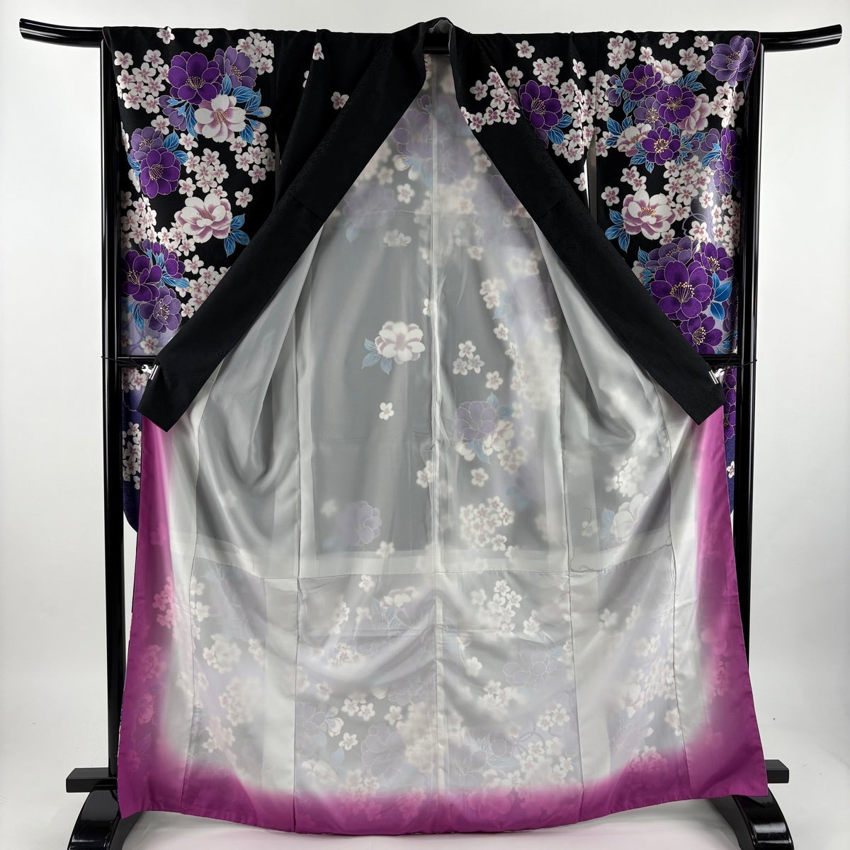 【美品】 振袖 身丈169cm 裄丈68cm L 袷 桜 金彩 染め分け 黒 化繊 優品