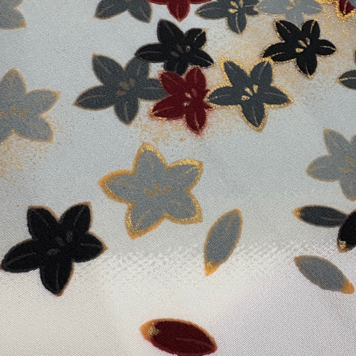 訪問着 身丈157cm 裄丈65.5cm M 袷 花 霞 金彩 白 化繊 優品