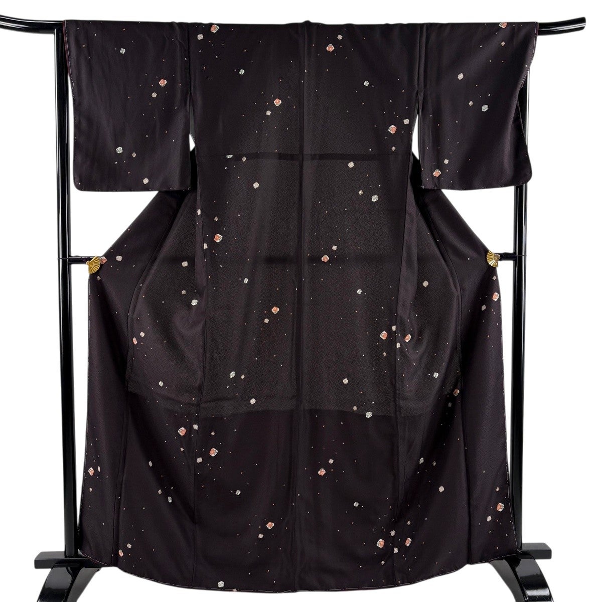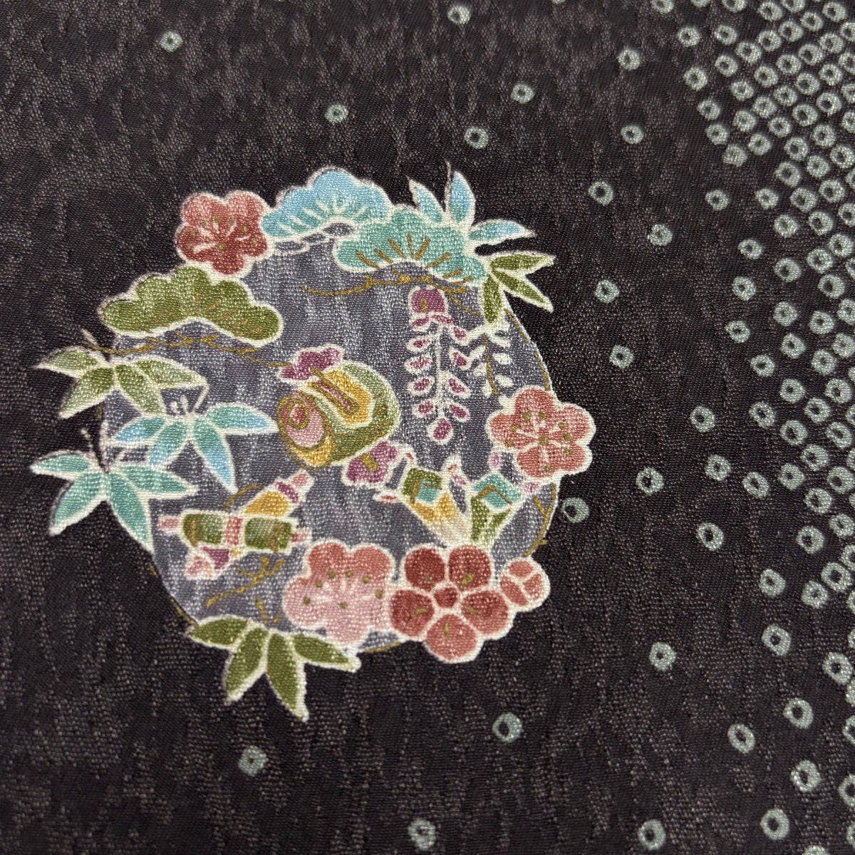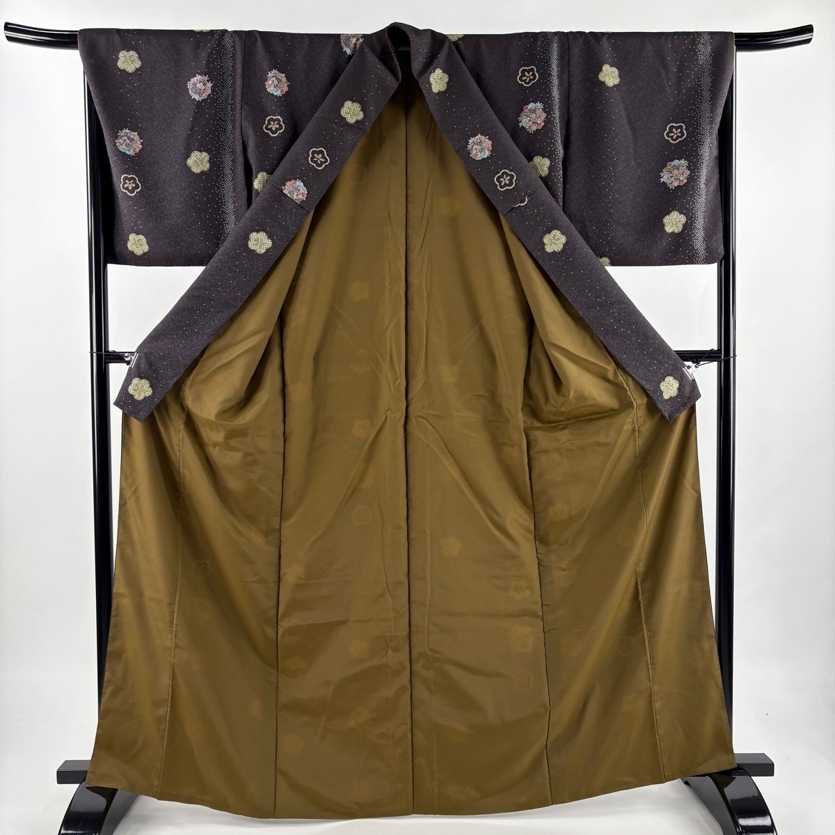小紋 身丈167cm 裄丈67.5cm L 袷 洗える着物 花丸文 梅 金彩 濃紫 化繊 優品