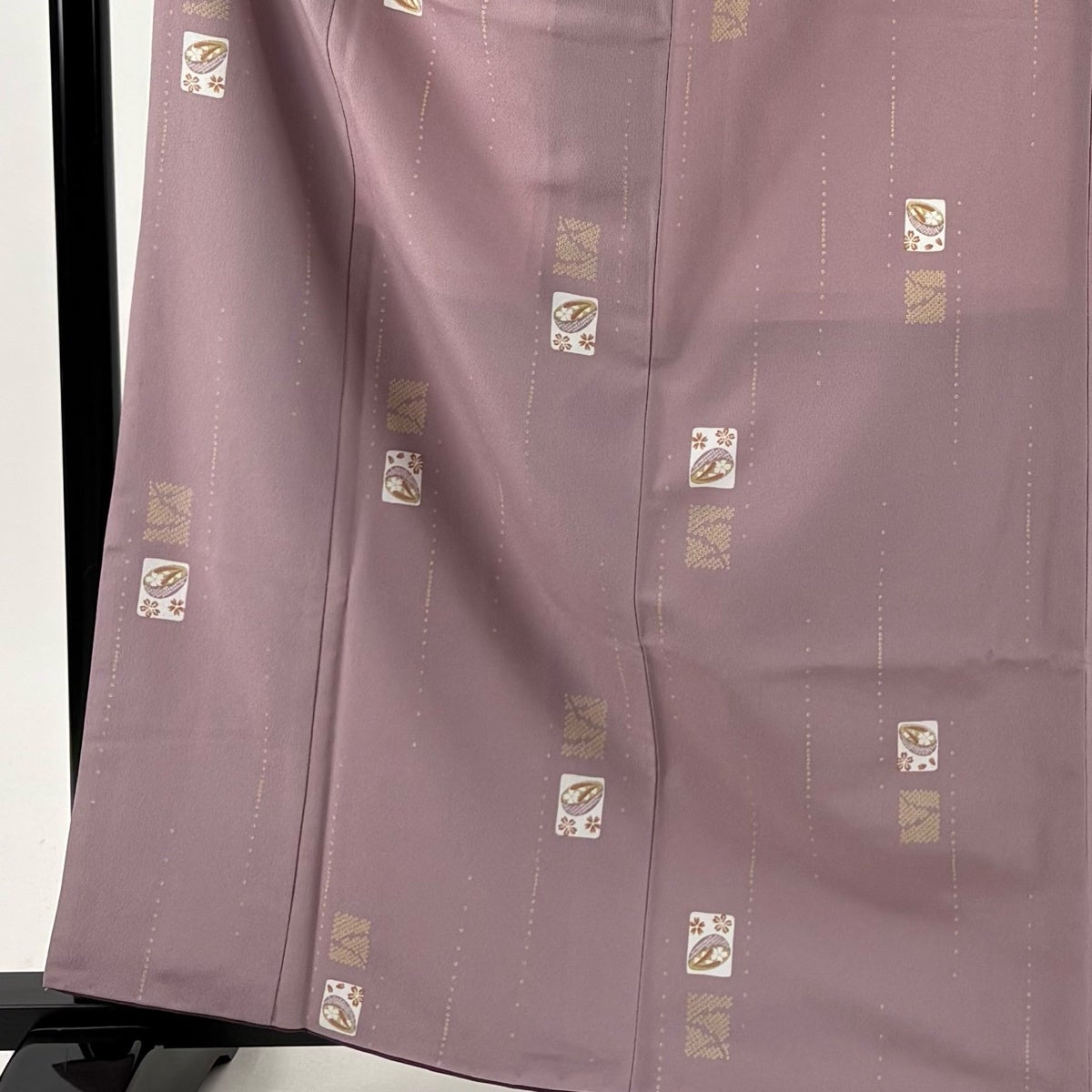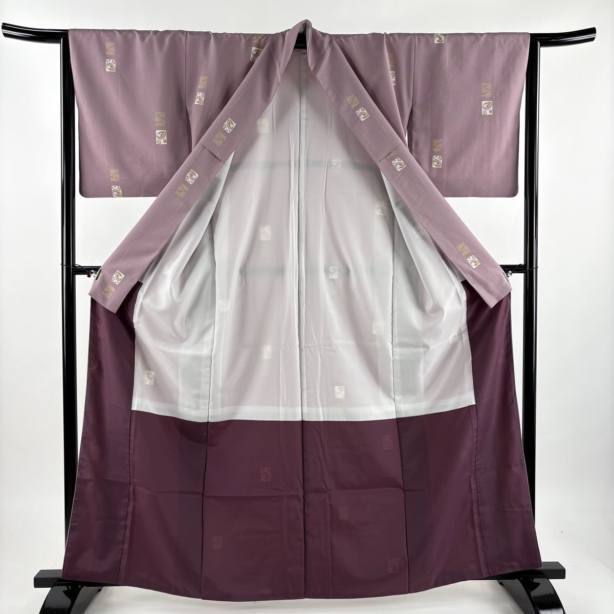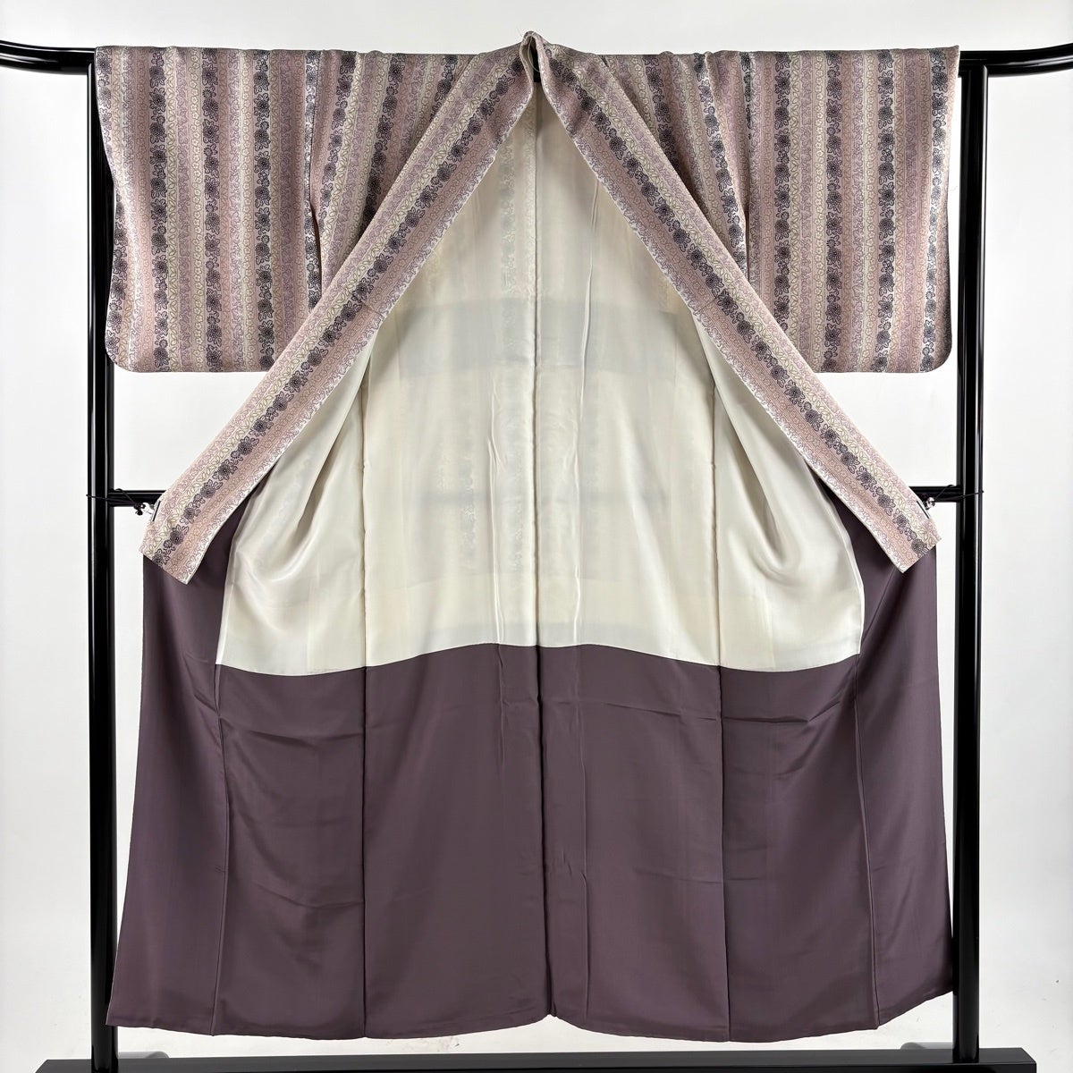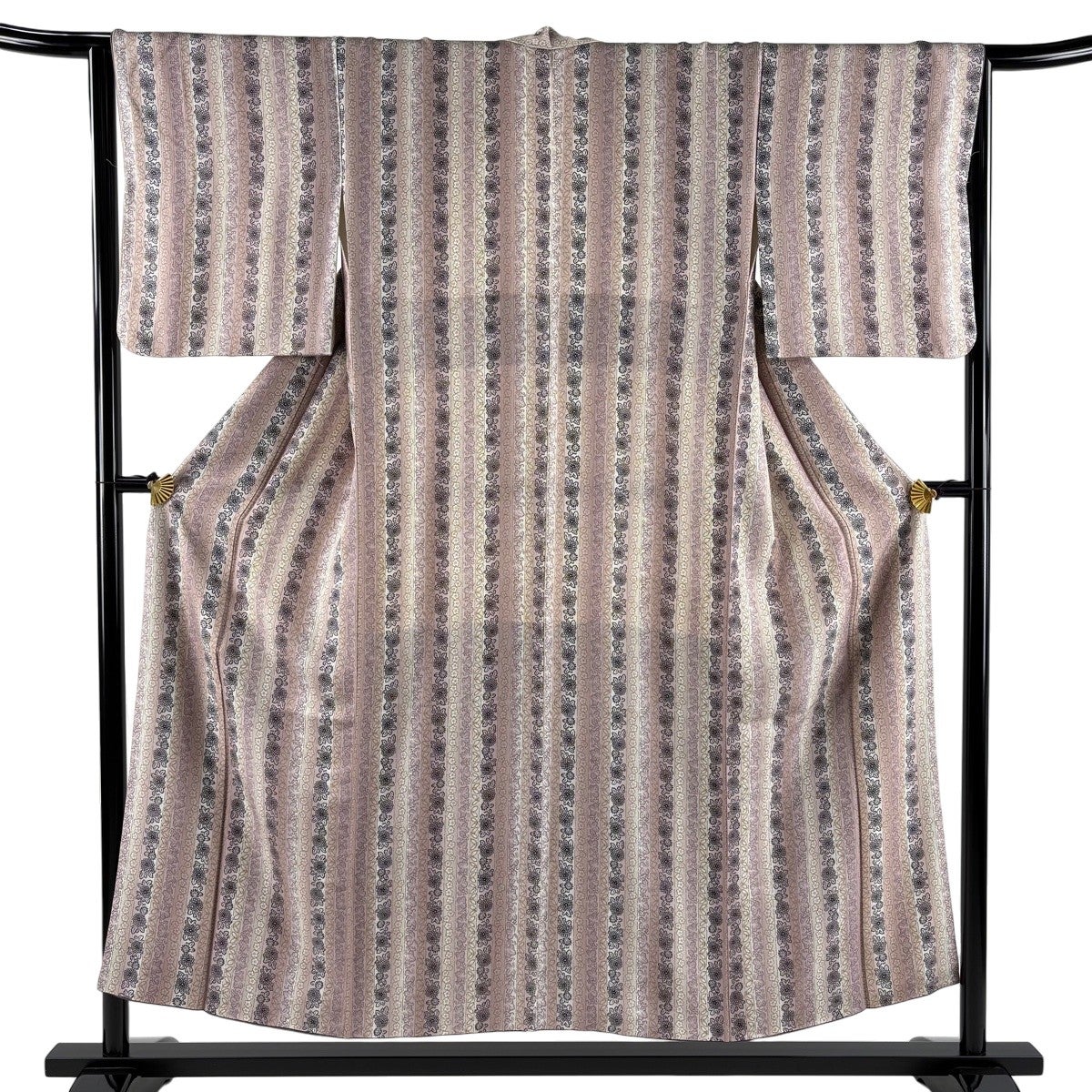 小紋 身丈151.5cm 裄丈66cm M 袷 菊 縦縞 ぼかし 薄紫 正絹 優品