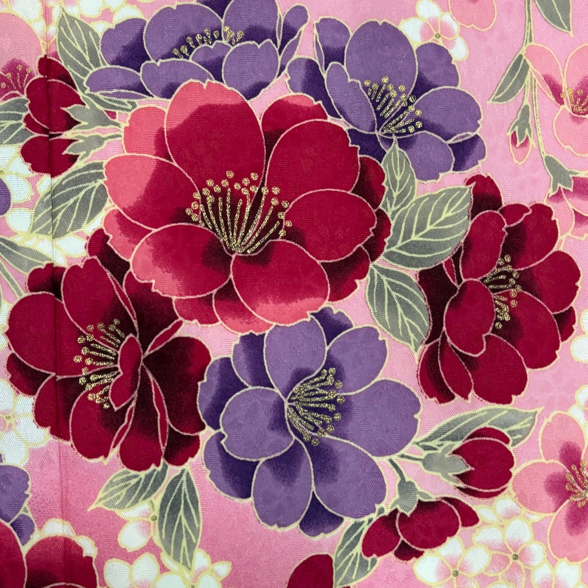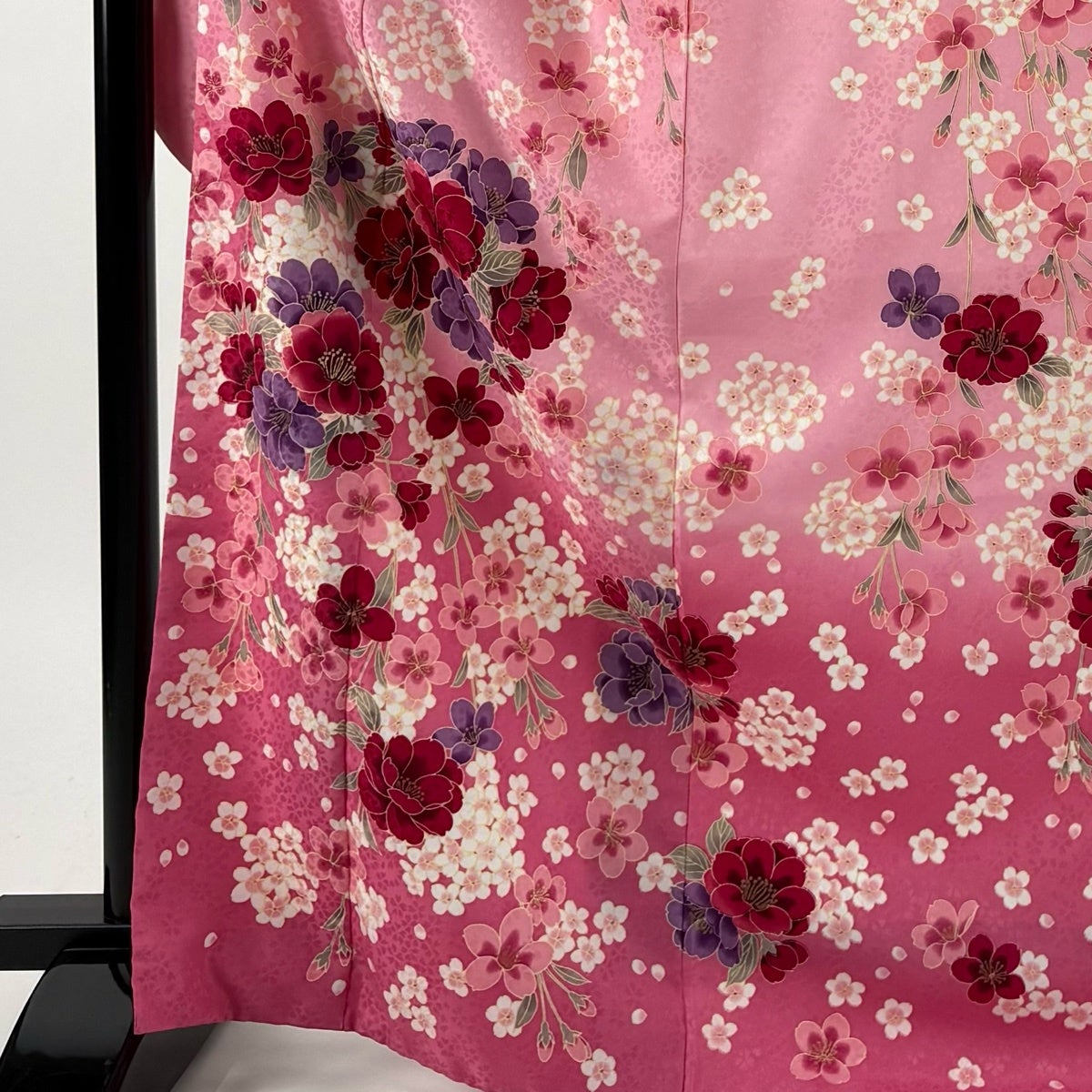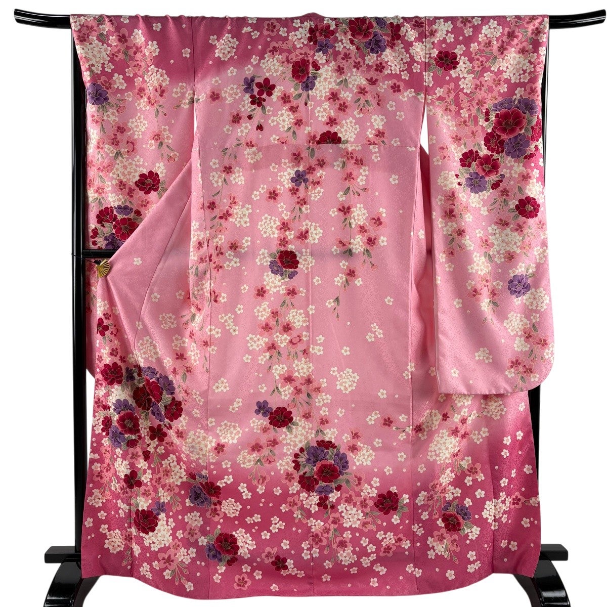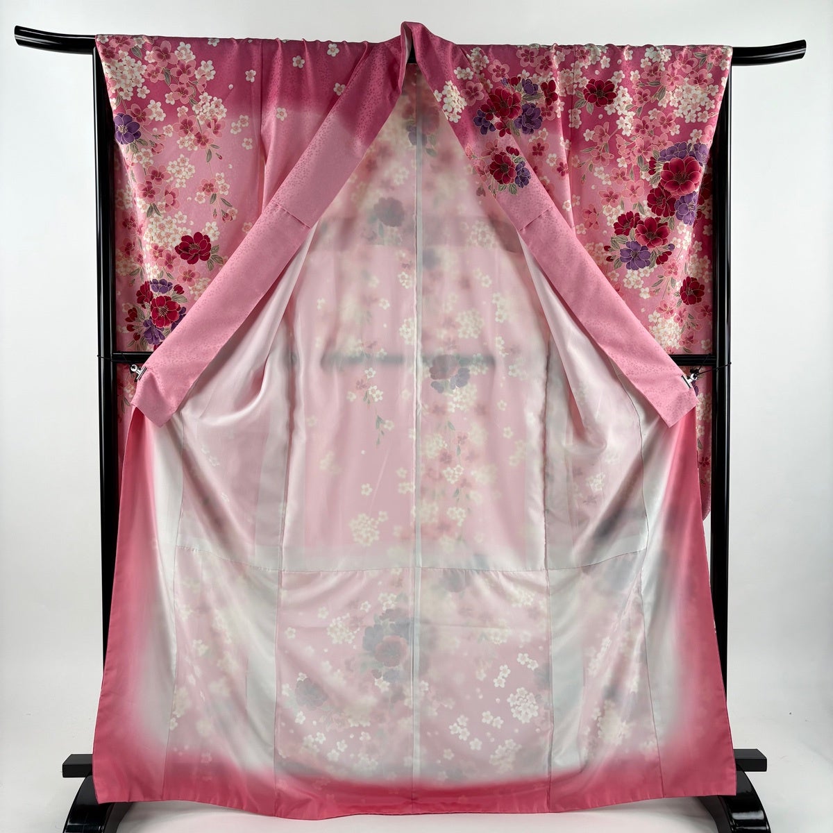 振袖 身丈169.5cm 裄丈69cm L 袷 洗える着物 桜 花びら 金彩 ぼかし ピンク 化繊 優品