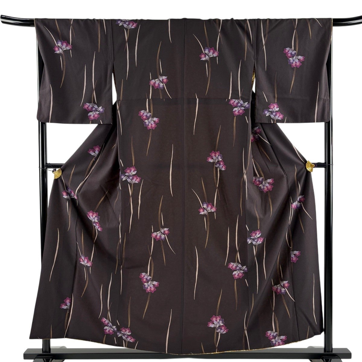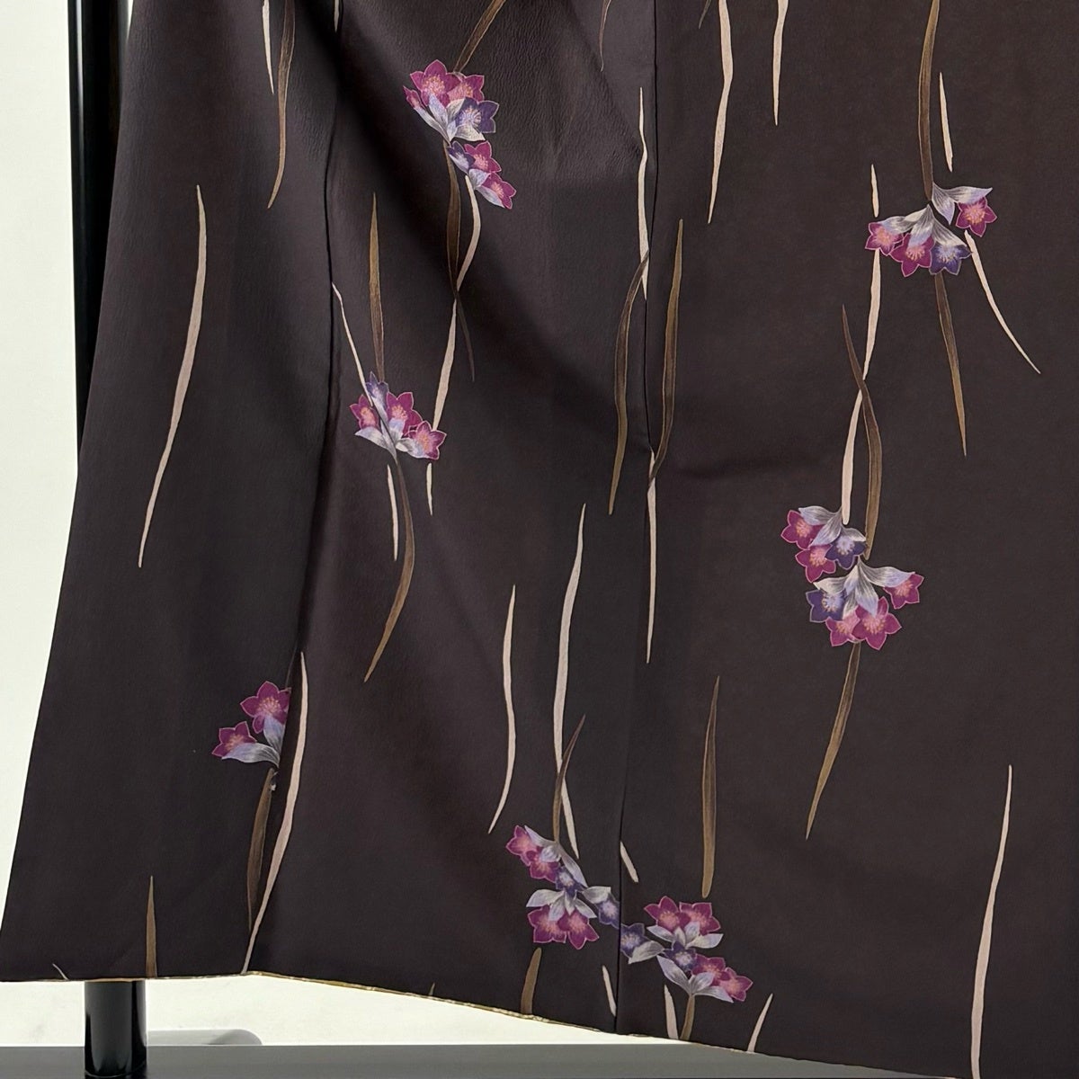【美品】 小紋 身丈157cm 裄丈68cm L 袷 洗える着物 ヒロミチナカノ 草花 焦茶色 化繊 優品
