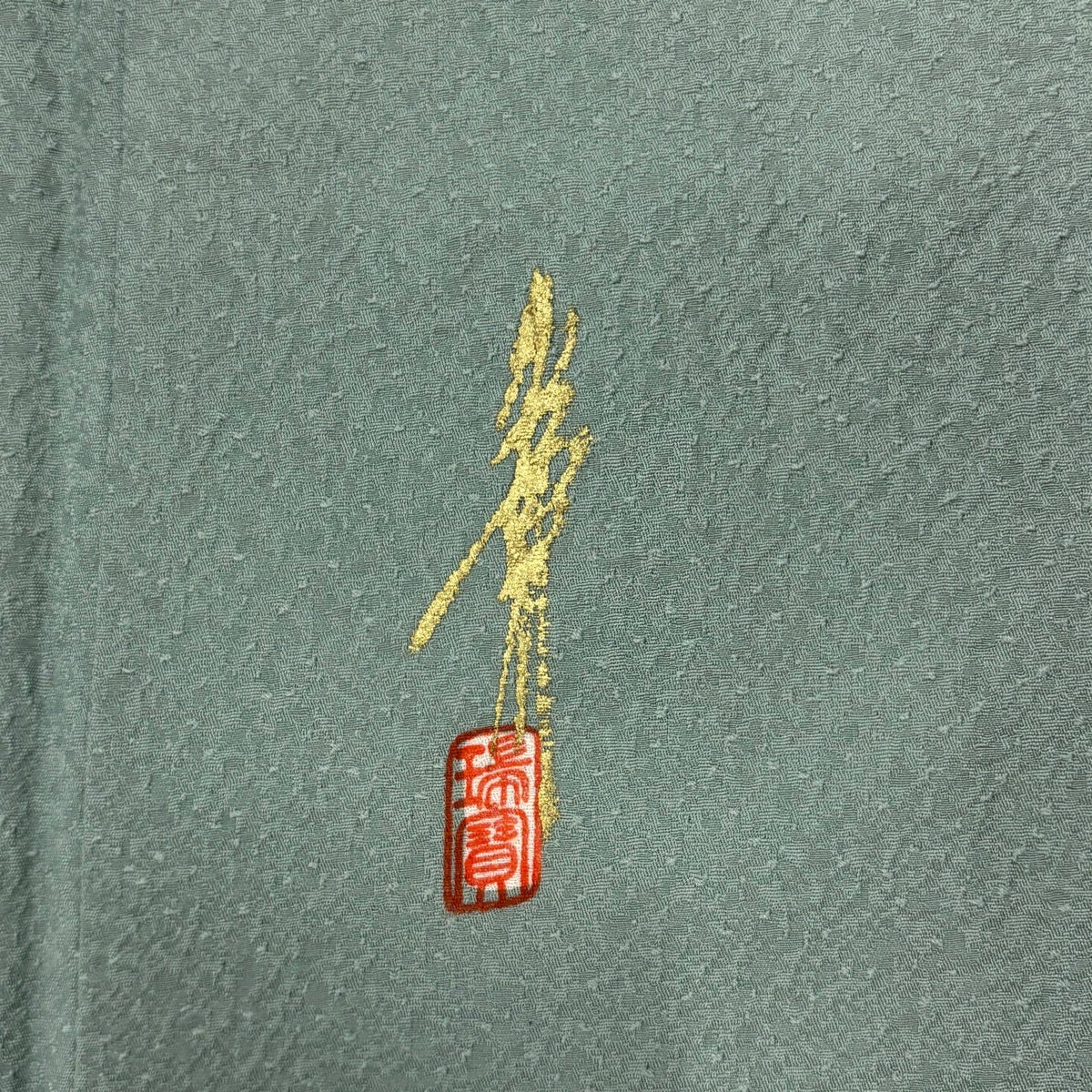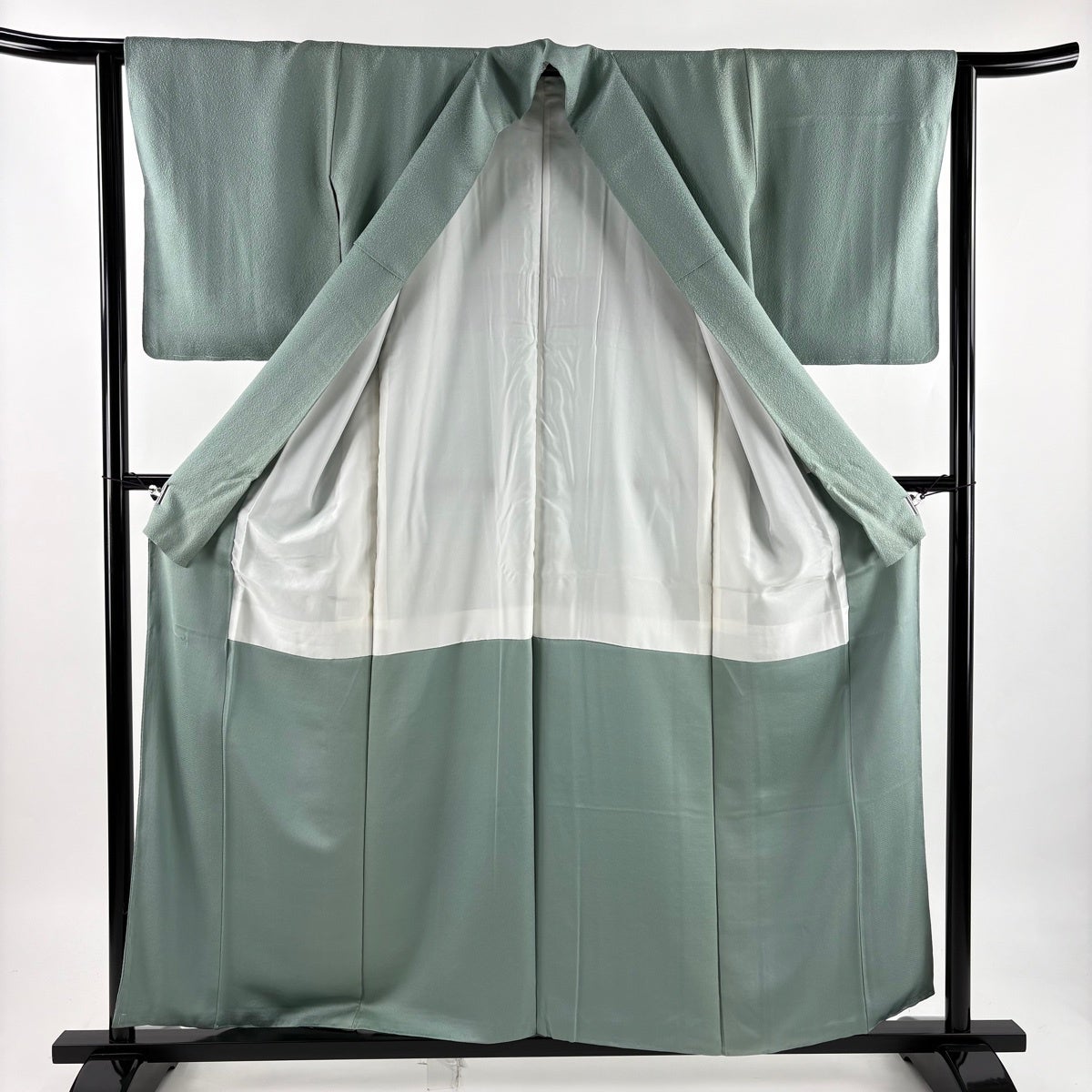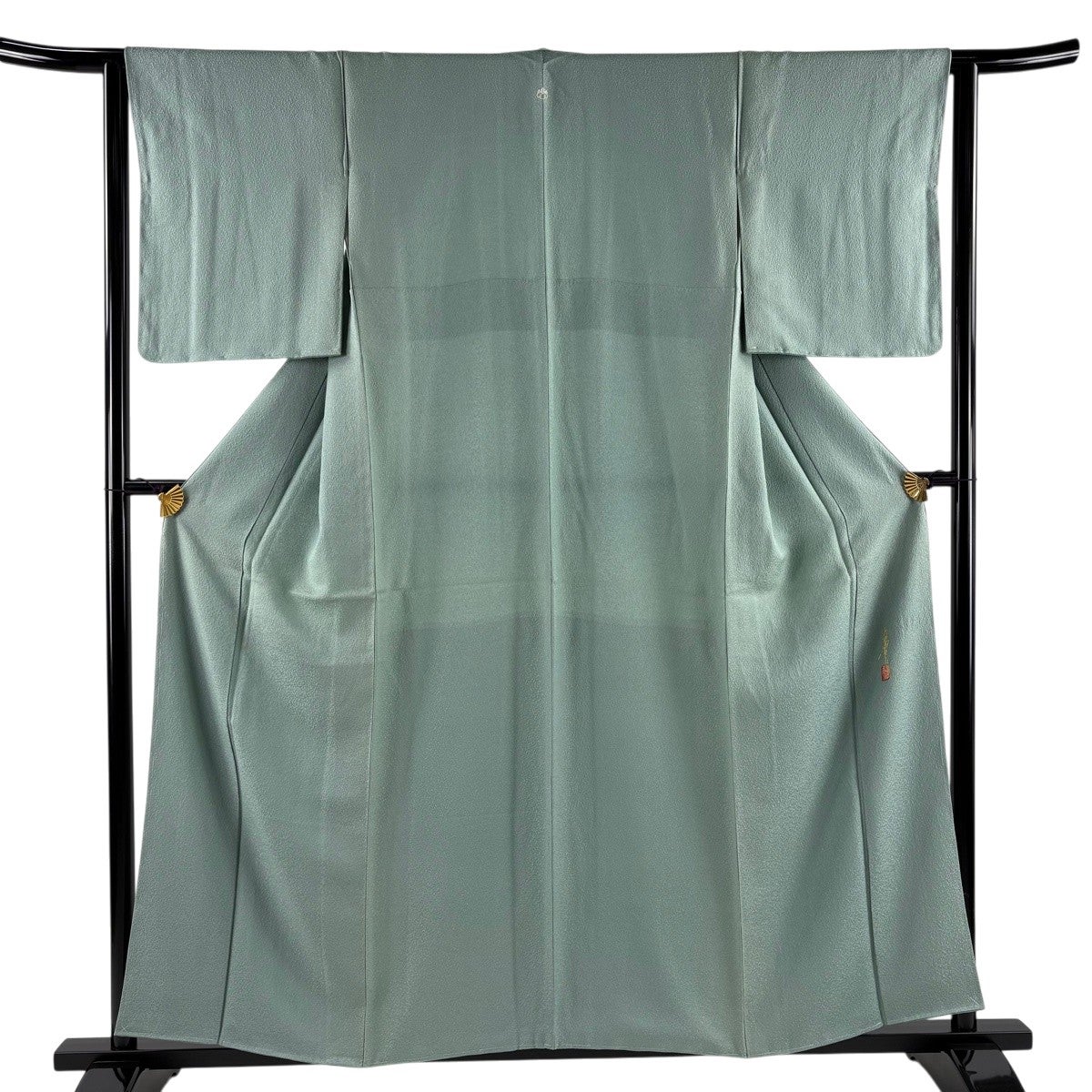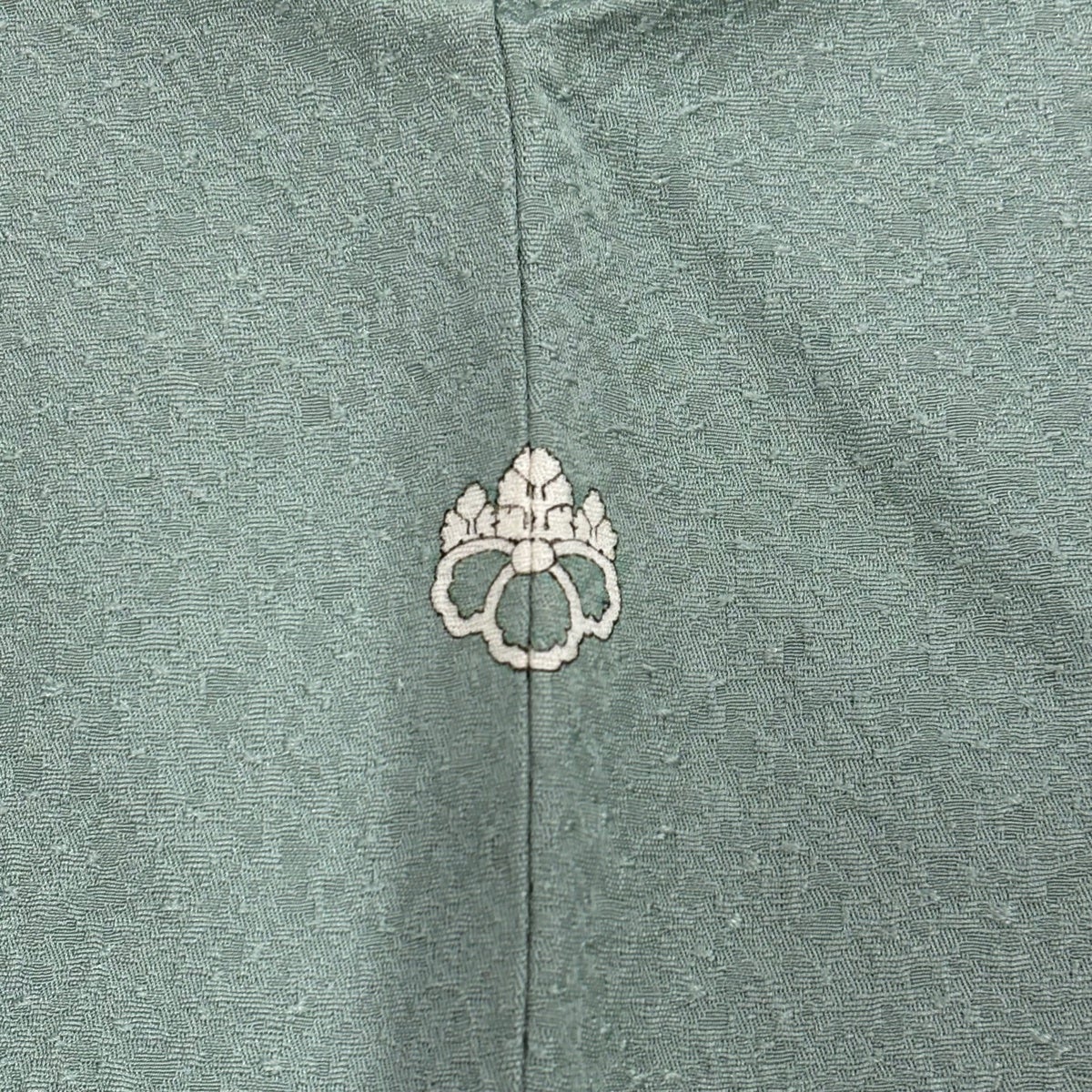色無地 身丈157cm 裄丈63cm S 袷 落款あり 地紋 灰緑 正絹 優品 一つ紋