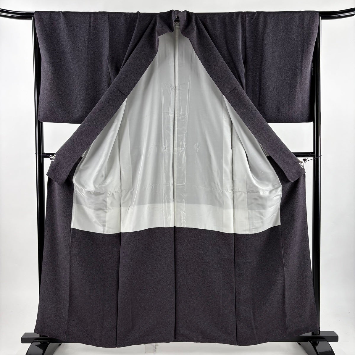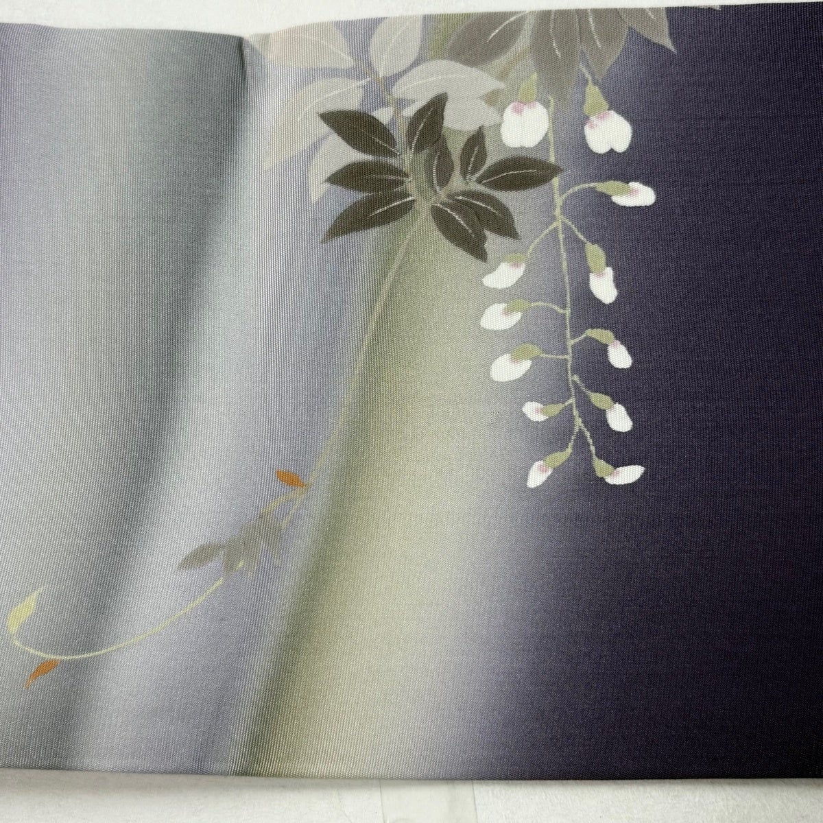 訪問着 身丈167cm 裄丈66.5cm M 袷 枝垂れ桜 地紋 金彩 濃紫 化繊 優品
