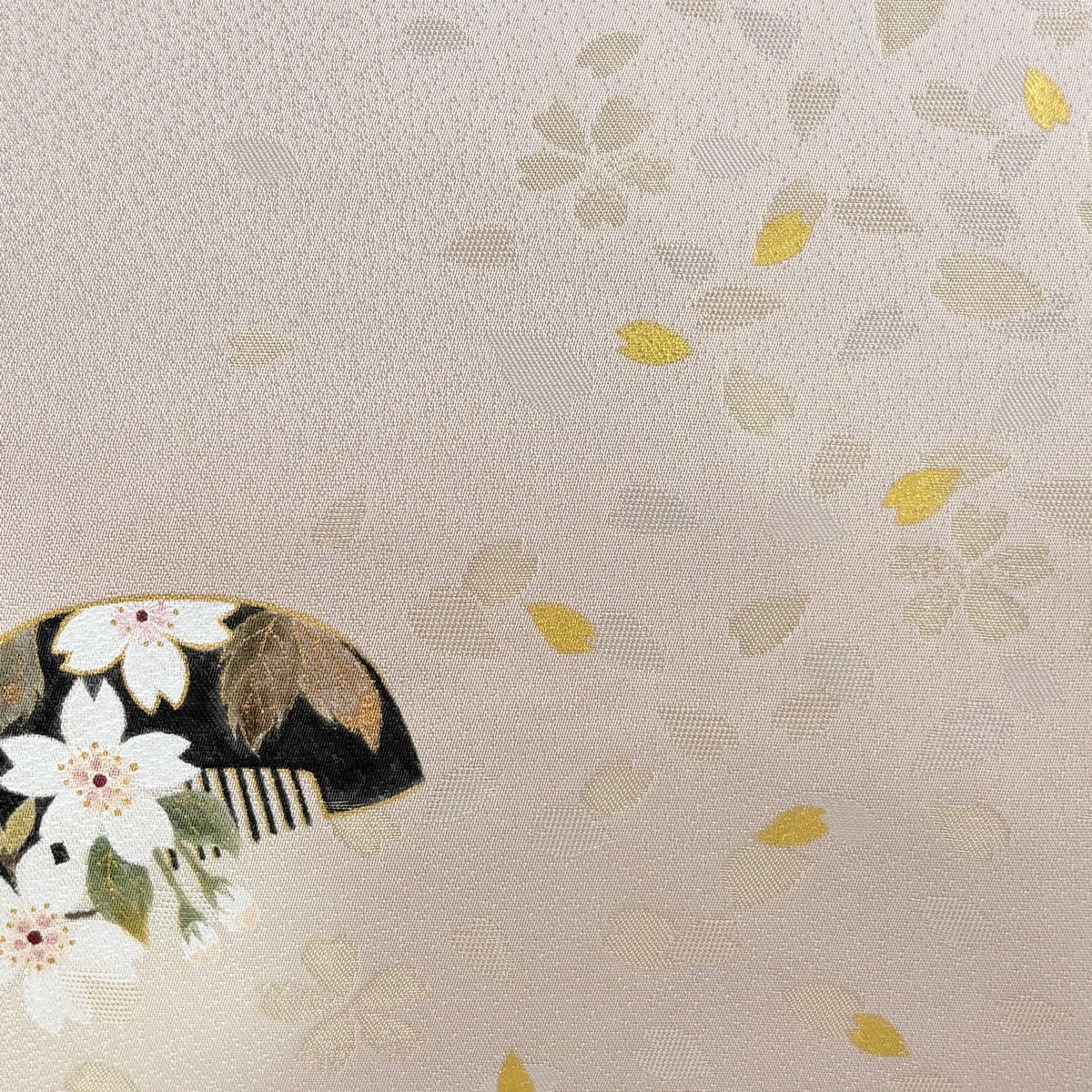 【美品】 小紋 身丈166cm 裄丈67cm M 袷 洗える着物 桜 花弁 ピンクベージュ 化繊 優品