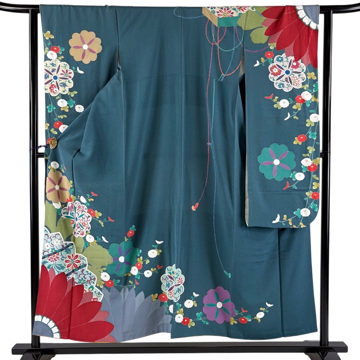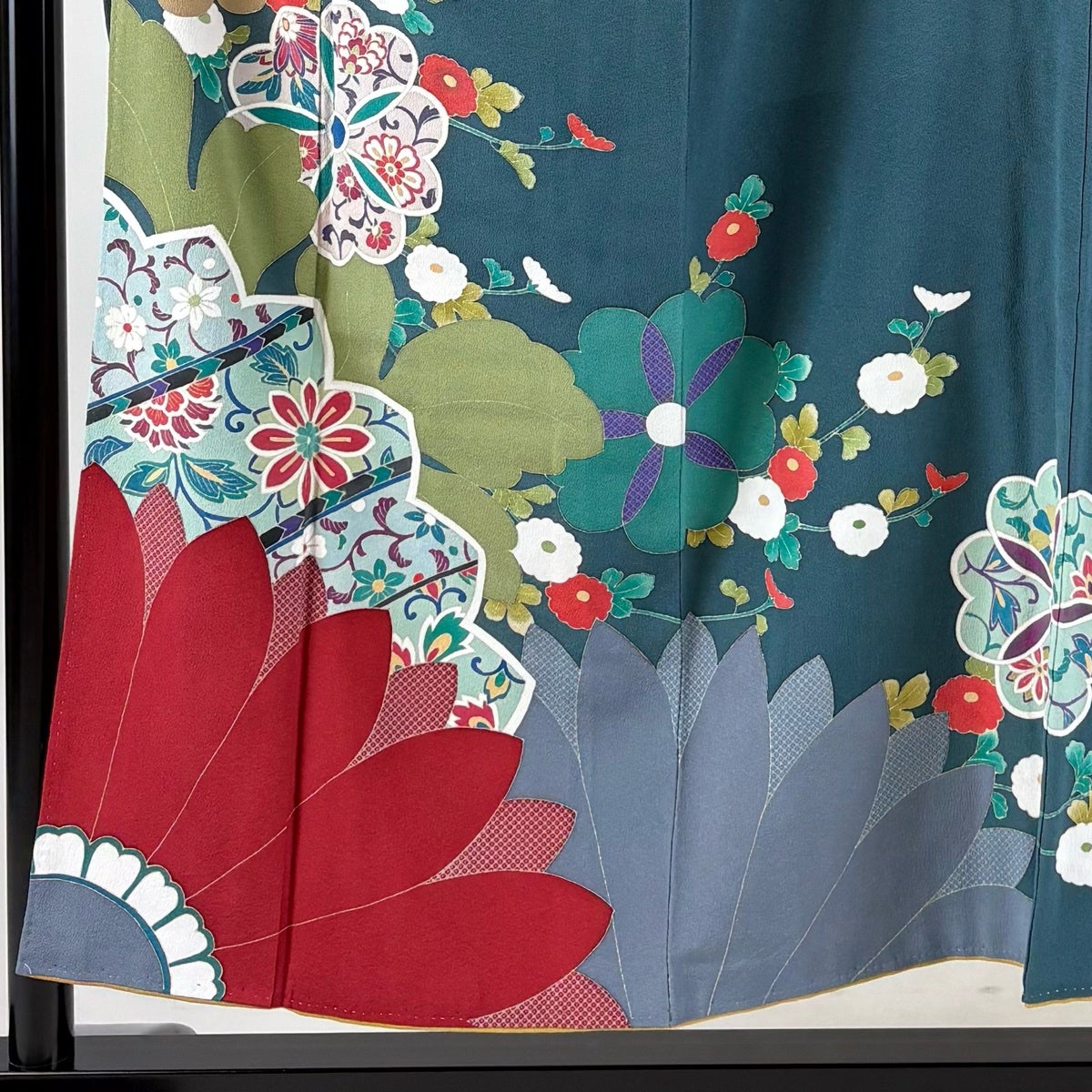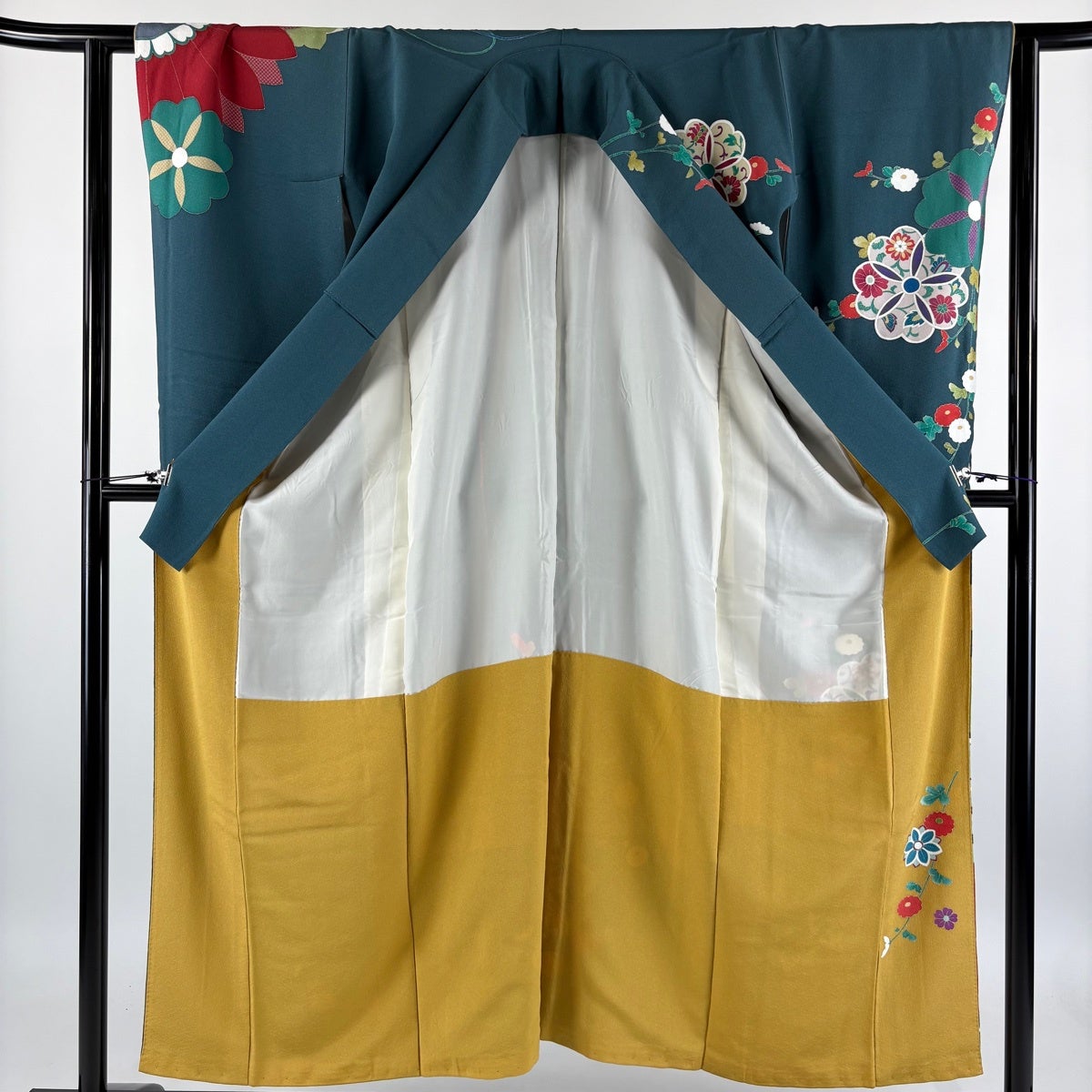 振袖 身丈153.5cm 裄丈64cm M 袷 菊 花唐草 金彩 青緑 正絹 秀品