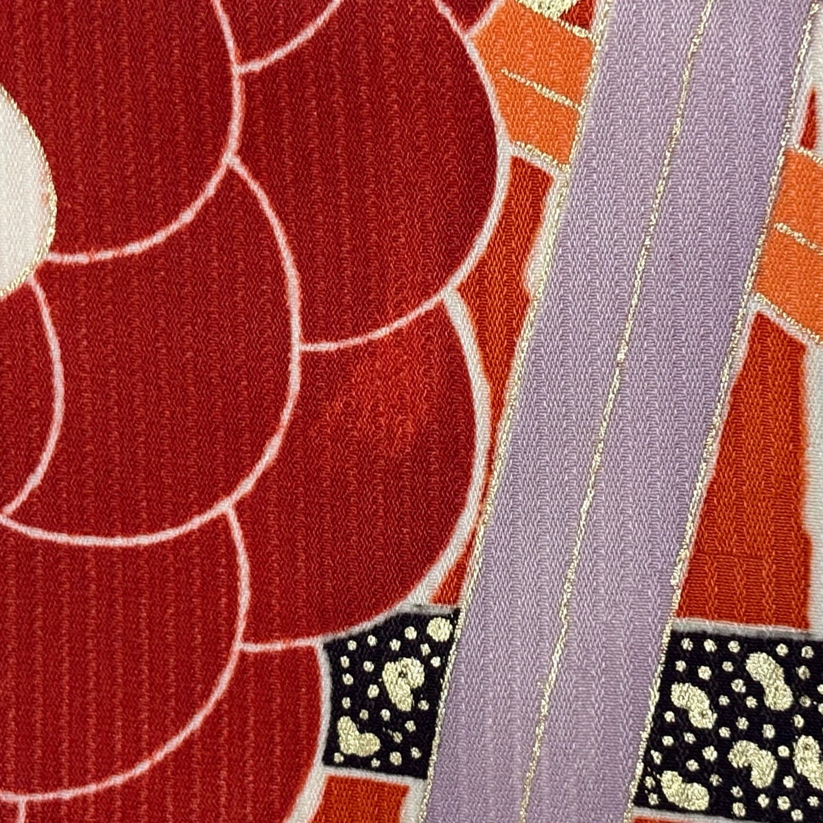 振袖 身丈165.5cm 裄丈64cm M 袷 藤 牡丹 金糸 金彩 朱色 正絹 秀品