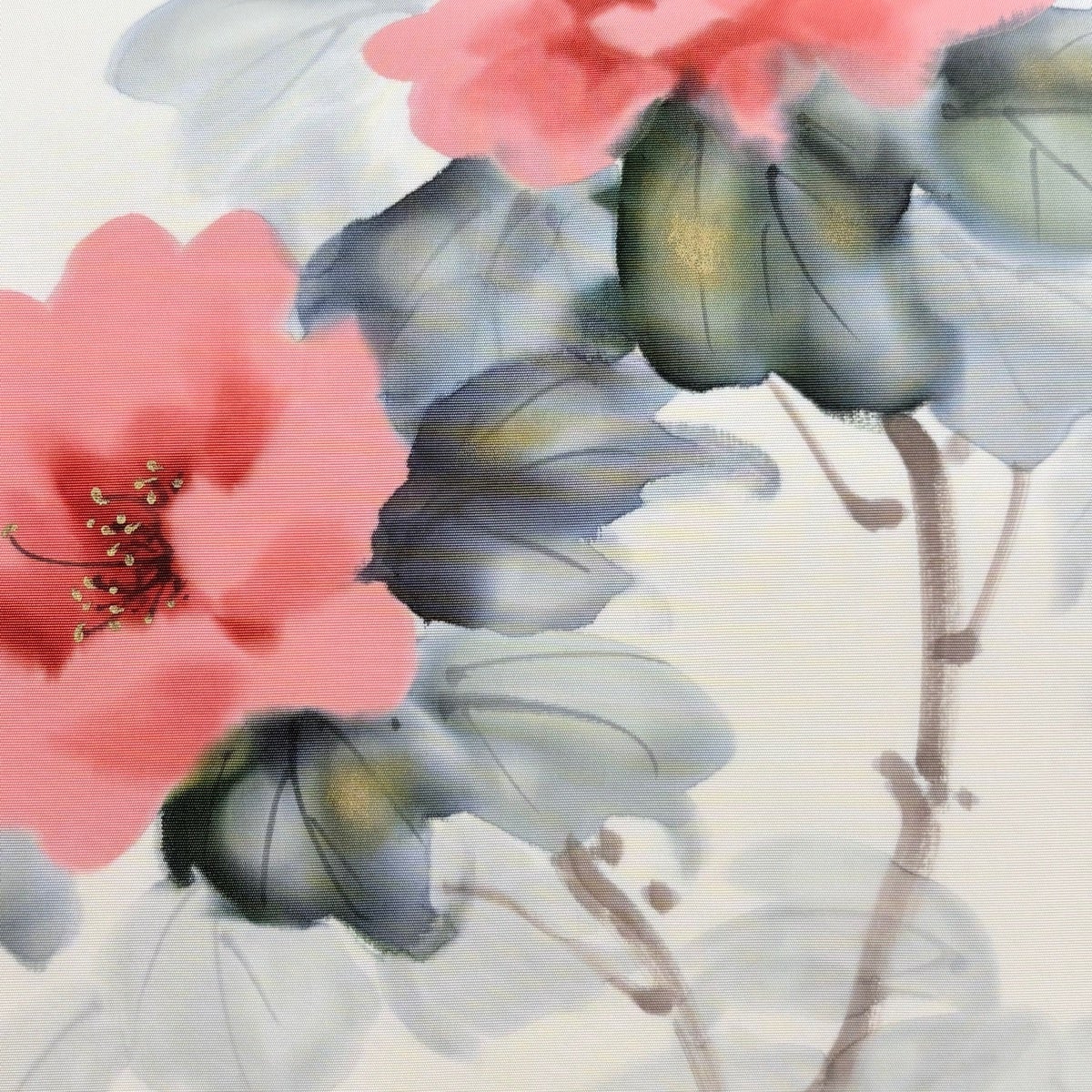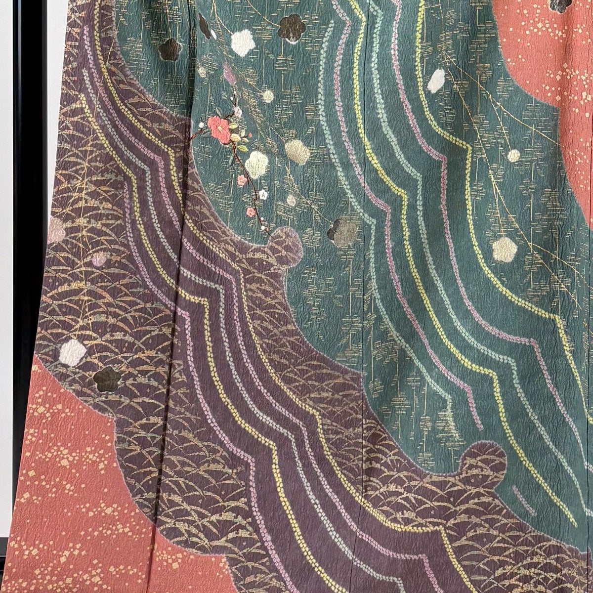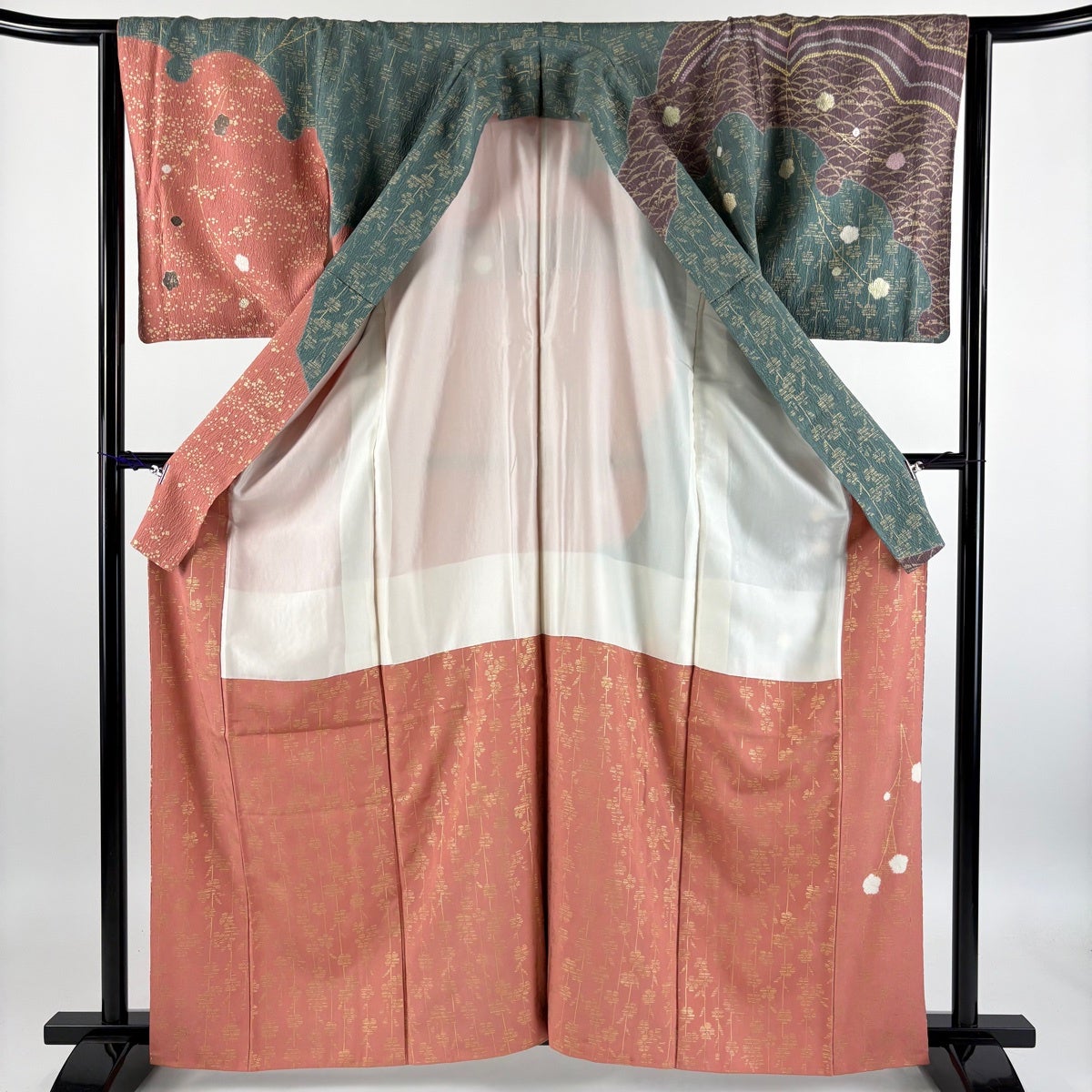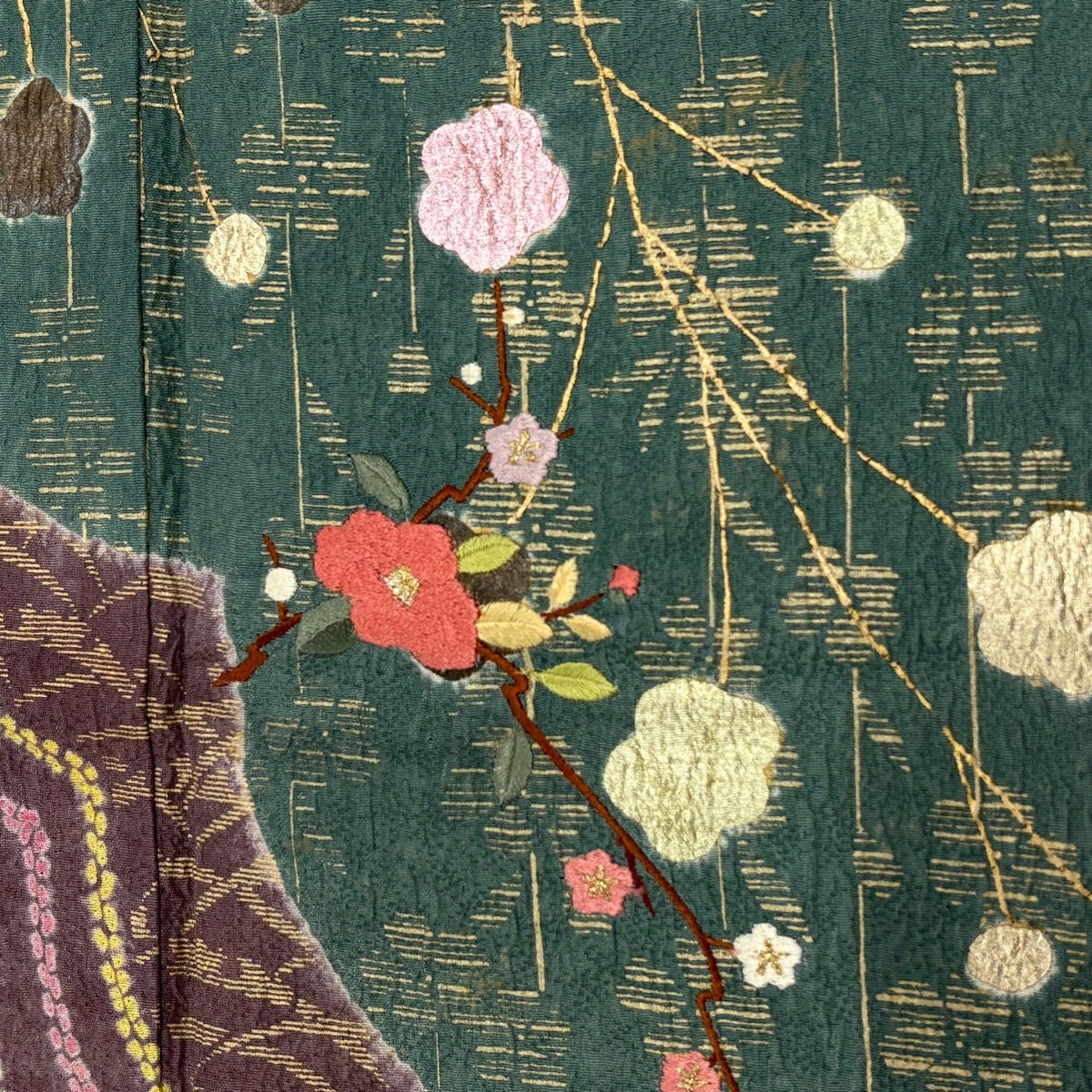 訪問着 身丈163cm 裄丈64cm M 袷 椿 梅 刺繍 金彩 青緑 正絹 秀品