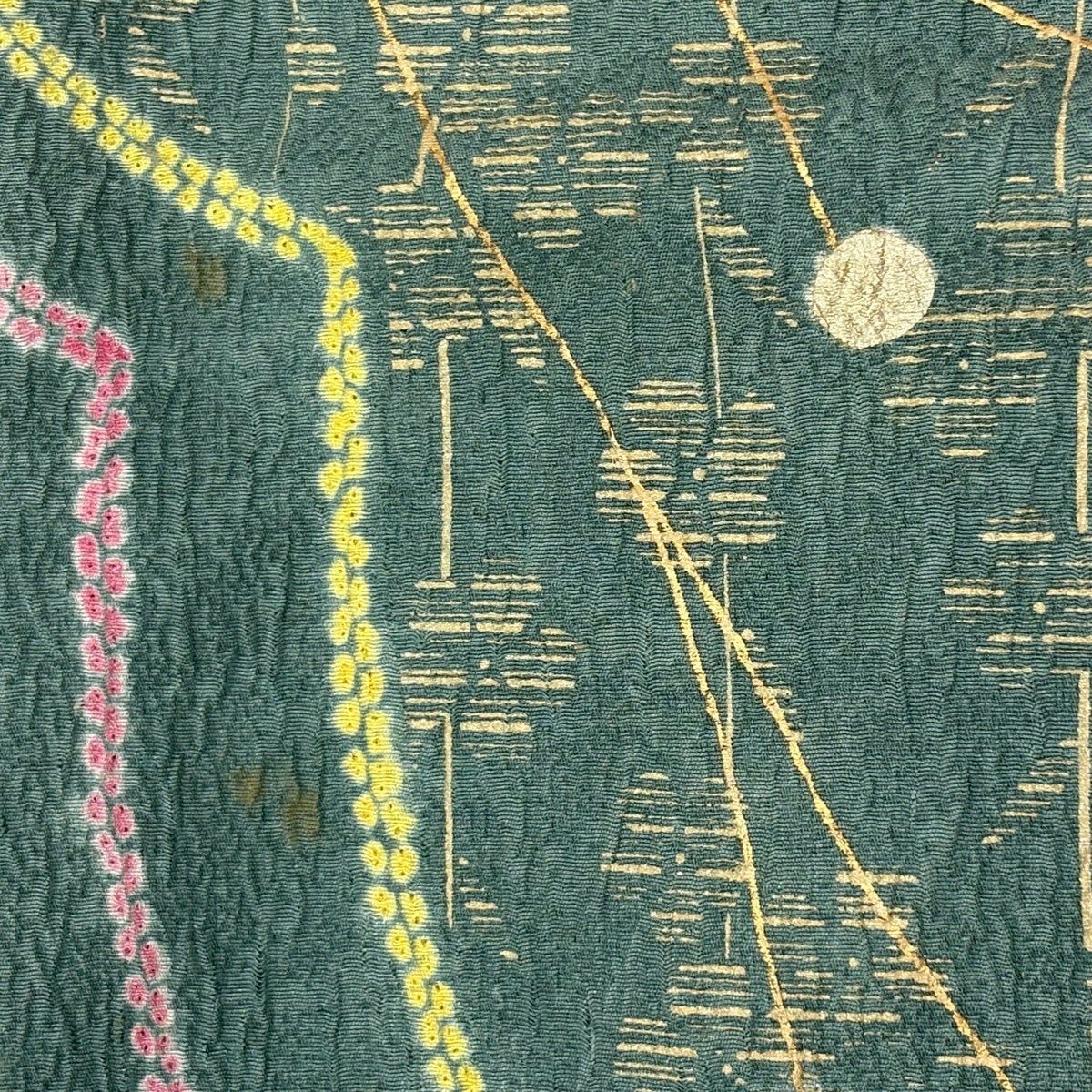 小紋 身丈159cm 裄丈63cm S 袷 草花 金彩 絞り 黄土色 正絹 秀品