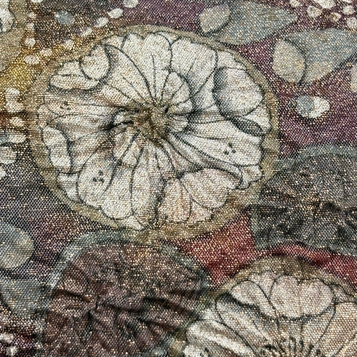 付下げ 身丈163cm 裄丈62cm S 袷 辻が花柄 地紋 金彩 灰色 正絹 秀品