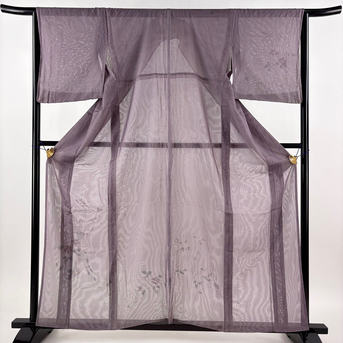 反物 秀品 色無地 落款有 草木染 地紋 茶紫 正絹