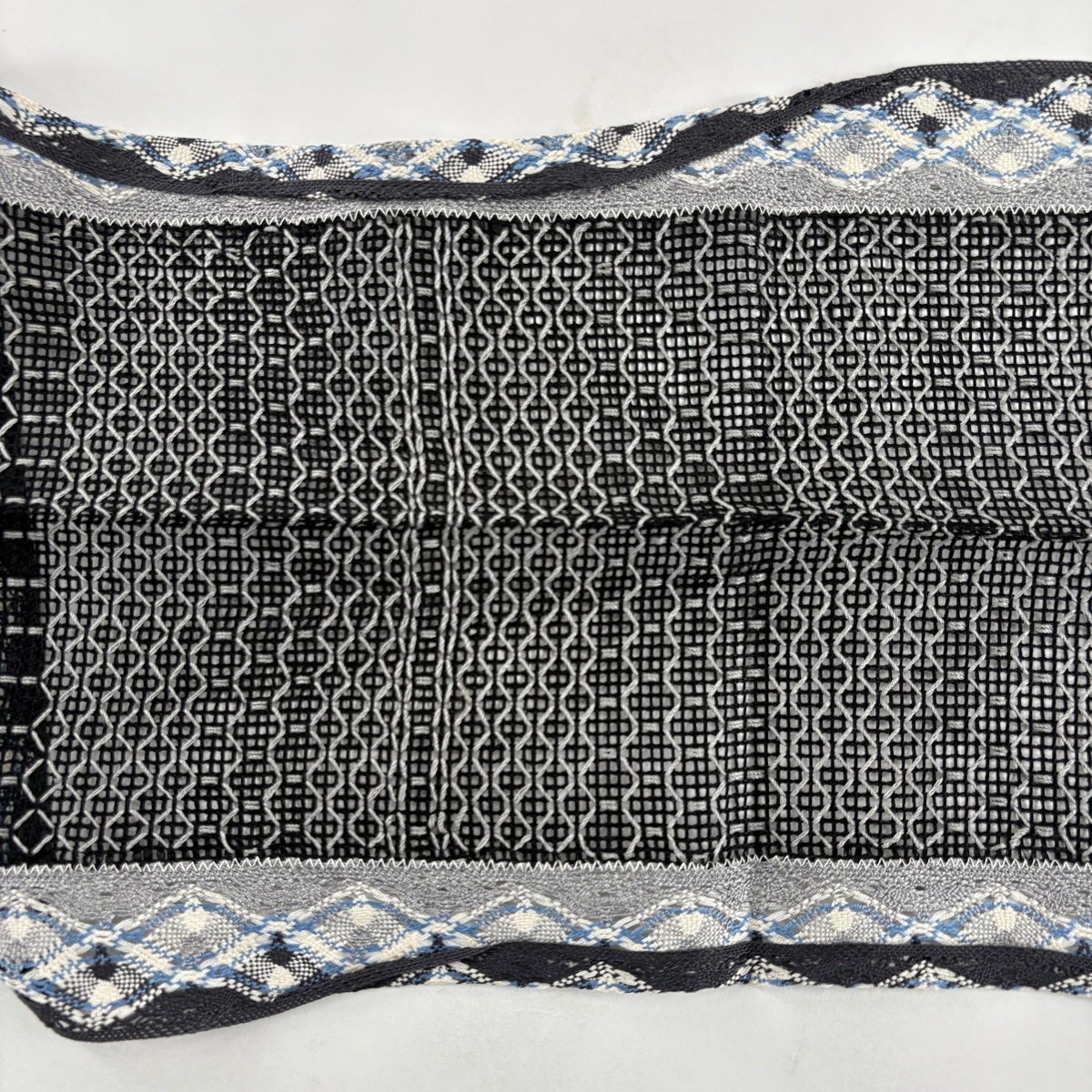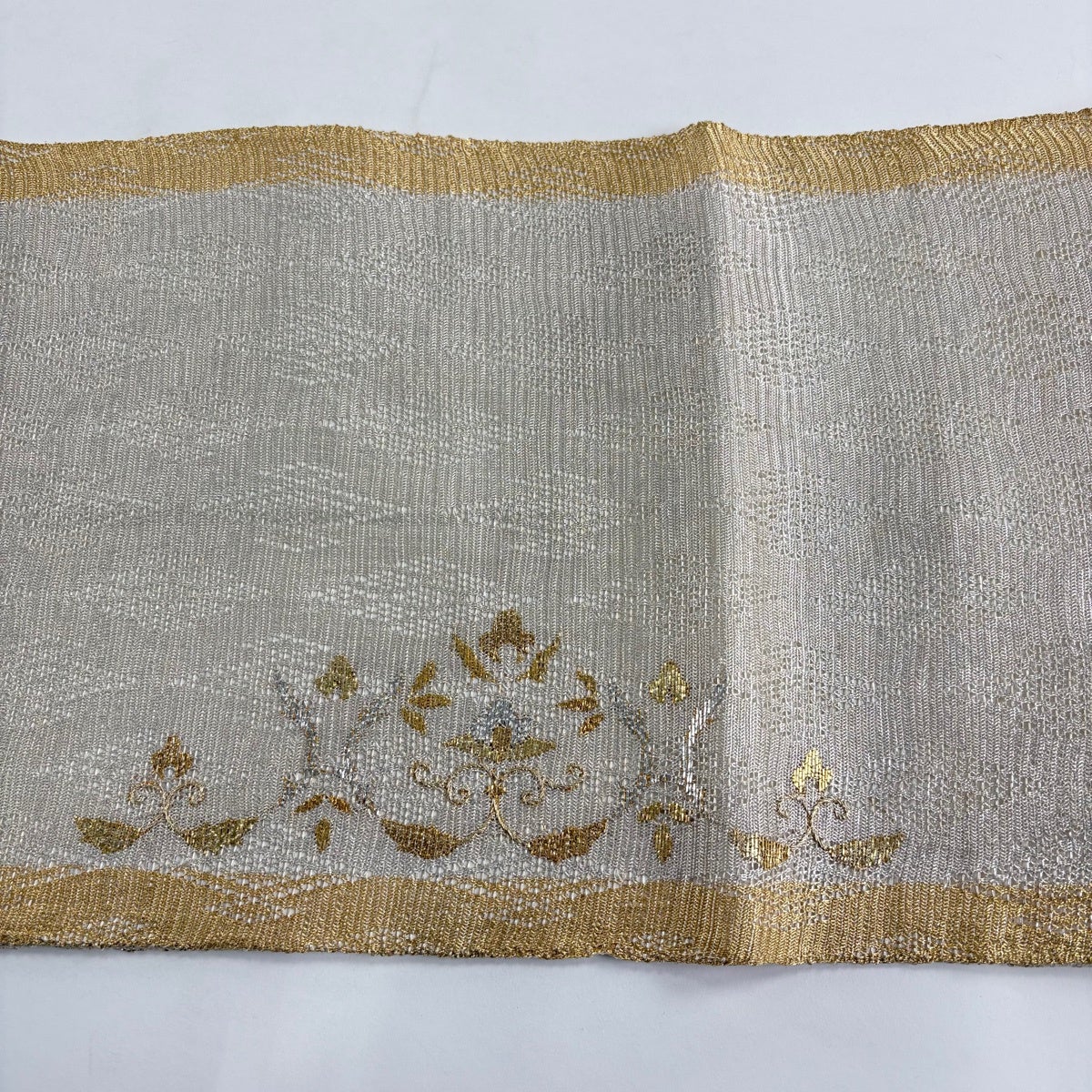 【美品】半幅帯 優品 菊 格子 灰色 化繊