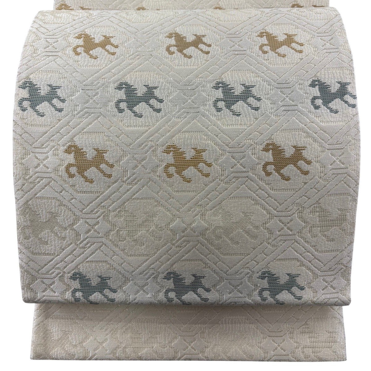 【美品】半幅帯 秀品 猫 足跡 ベージュ 化繊
