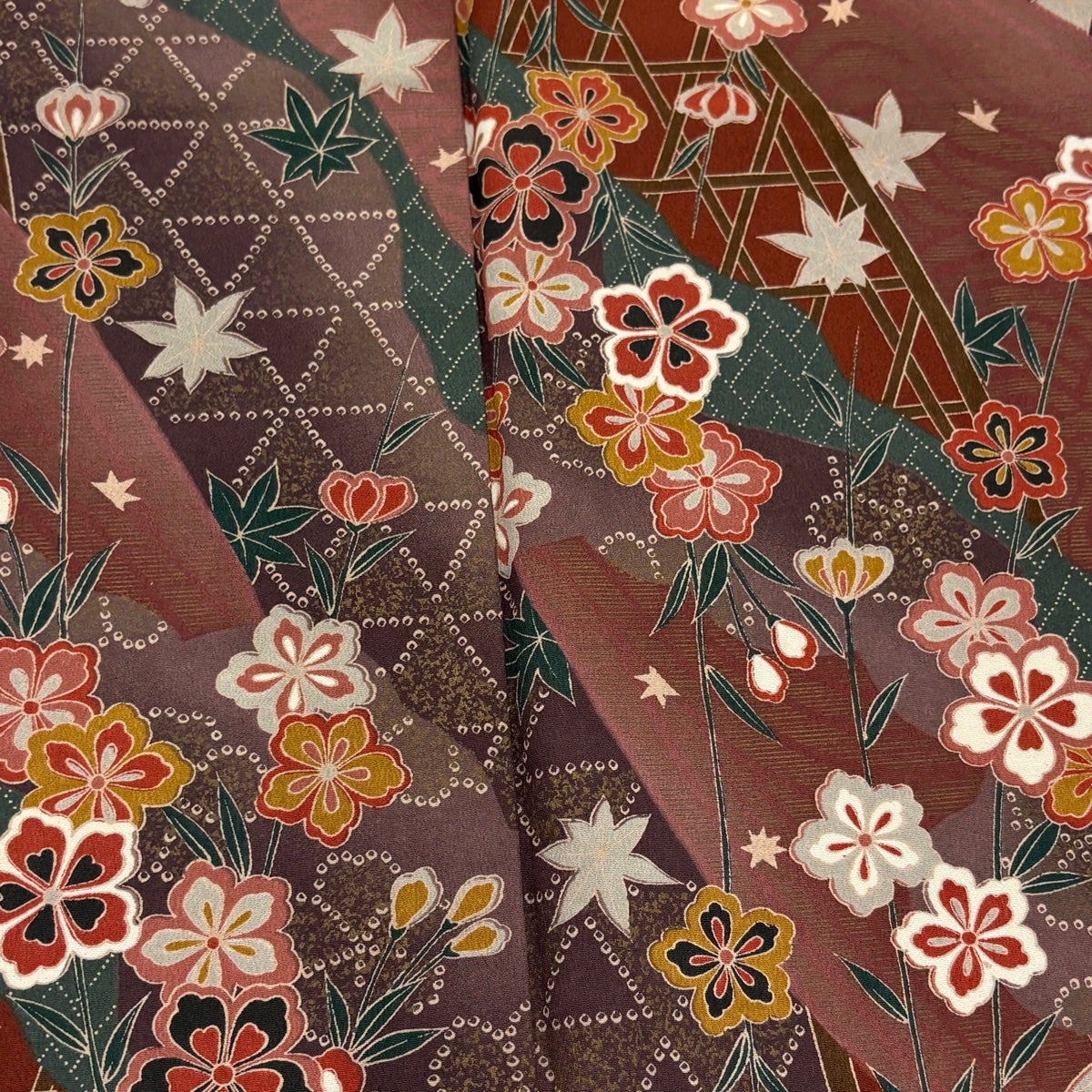 訪問着 身丈155.5cm 裄丈64cm M 薄物 滝泰 落款あり 幾何学模様 絞り ぼかし 茶紫 正絹 名品